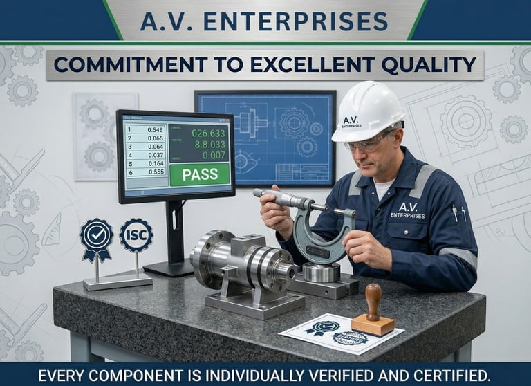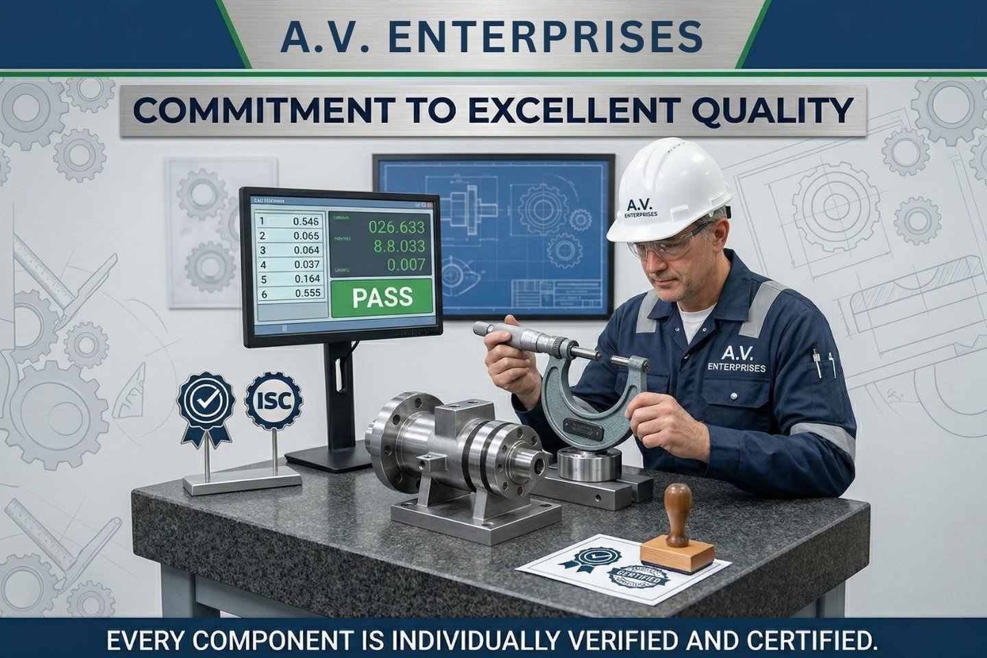 At AV Enterprises, quality is of paramount importance, and we maintain rigorous standards at every stage of production. Our comprehensive quality control protocol includes a thorough inspection of raw materials, continuous in-process checks, and exhaustive final product testing to ensure full compliance with industrial standards. Using modern and precise measuring instruments, our expert team meticulously inspects every component before assembly to verify absolute accuracy and adherence to required specifications. Supported by advanced machinery, this dedication to excellence guarantees the consistent quality, superior durability, and high performance that our clients expect.